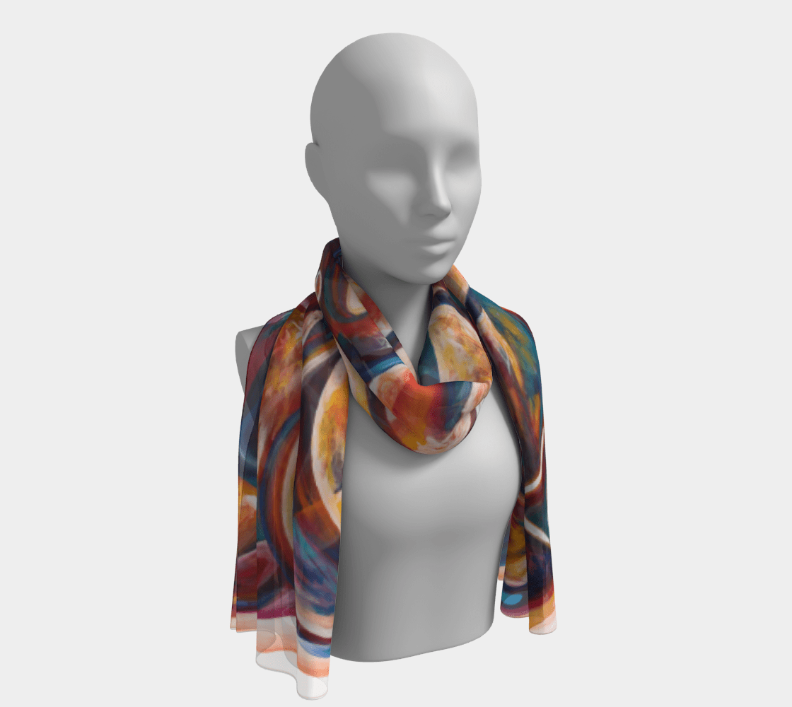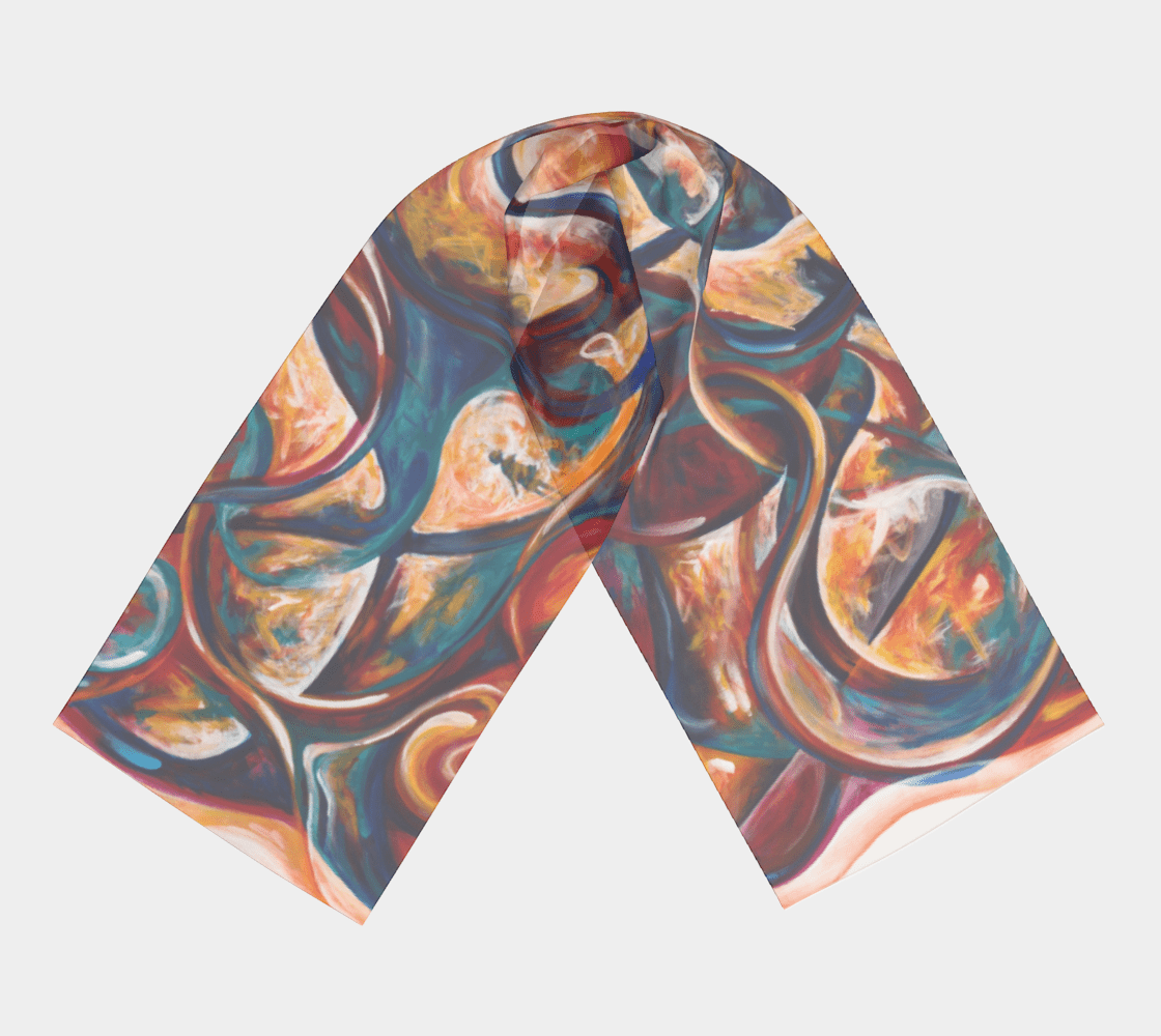 I never compromise with my art, and my silk scarves are no different! This 100% pure silk scarf captures the actual colors and concepts portrayed in my unique artwork, and the feel of the silk is on par with luxury brands.